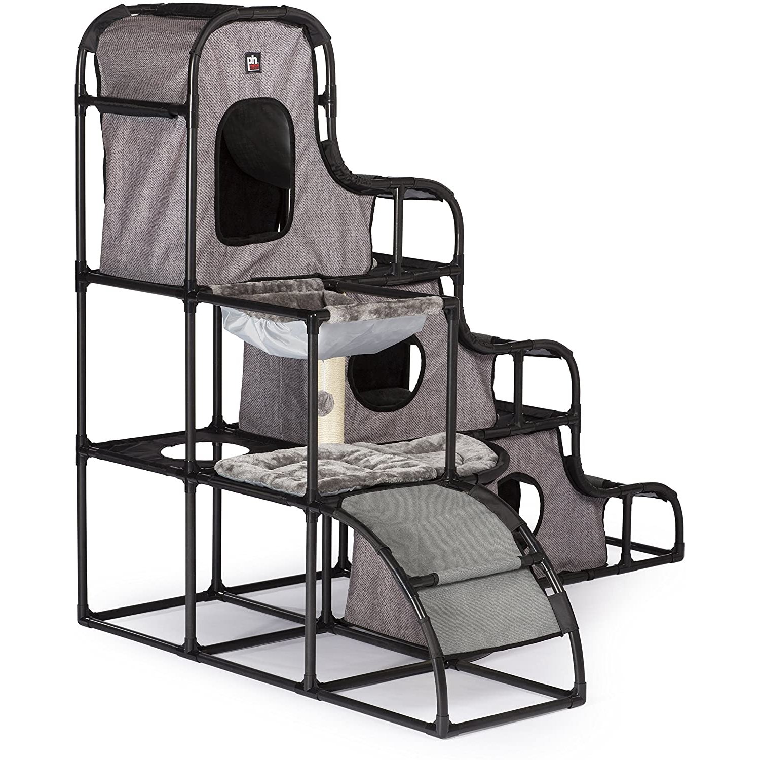 • Four hideaways on three levels - a penthouse nook and three dens, all with super-soft plush mats plus a plush hammock for lounging
